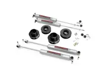 Rough Country 2 inch Suspension Lift Kit 69530 for the 4WD Jeep Grand Cherokee increases ground clearance and features easy bolt-on installation. The kit features front and rear coil spring spacers and all hardware needed for installation. The kit also includes front and rear Rough Country Premium N3 series shocks for the best performance for both on and off-road use.