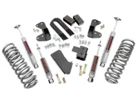 Rough Country 2.5 inch Suspension Lift Kit 42530 for the 4WD Ford Bronco increases ground clearance and levels the front with the rear of the vehicle. The kit includes front lifted coil spring with radius arm drop brackets, 2 inch rear lift blocks and four Rough Country premium N3 series shocks.
