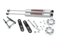 Rough Country 2.5 inch Suspension Lift Kit 74030 for the 4WD Toyota Tacoma and 2WD PreRunner increases ground clearance and levels the front with the rear of the vehicle. The kit features front strut extensions and rear 1.5 inch lift shackles. The kit also includes rear Rough Country Premium N3 series shocks which offer the best in balanced performance for on and off-road use. Easy bolt-on installation does not require strut disassembly or strut compressor.