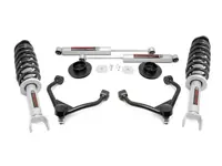 Rough Country Bolt-On 3 Inch Lift Kit 31231 for the 4WD Dodge Ram 1500 gives your Ram truck an aggressive look with an easy 100% bolt-on installation that requires zero cutting or drilling. The kit features a set of tubular Upper Control Arms designed to make alignment adjustments easier and front lifted struts and rear lift coil spacers to bring your truck to new heights. The kit also adds a set of N3 premium rear shocks.