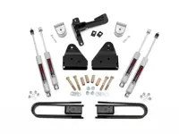 Rough Country 3 inch Suspension Lift Kit 509.20 for the 4WD Ford F-250 and F-350 Super Duty increases ground clearance and levels the front with the rear of the vehicle while maintaining the factory ride quality. The kit features front coil spring spacers and rear 2 inch lift blocks. Add in radius arm and track bar drop brackets and four Rough Country Premium N3 series shocks and you have the best performance for both on and off-road use.