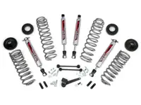 Rough Country 2.5 inch Suspension Lift Kit PERF694 for the Jeep Wrangler Unlimited features front and rear lifted coil springs and Premium N3 Series shocks increases ground clearance and levels the front with the rear of the Jeep.