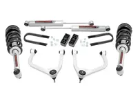 Rough Country 3.5 inch Suspension Lift Kit 110431 for the 2WD/4WD Chevy Silverado 1500 achieves a perfectly leveled stance by lifting the front of your truck 3.5 inches and the rear 2.5 inches. The kit includes front lifted N3 struts, forged aluminum upper control arms and rear lifted blocks.