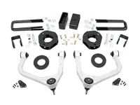 Rough Country 3.5 inch suspension lift kit 29601 for the GMC Sierra 1500 increases ground clearance to run up to 295/55R20 tires with an improved, aggressive look. Features front strut spacers, upper control arms with POM ball joints and rear lift blocks.