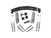 Rough Country 4 inch Suspension Lift Kit 500-70-76.20 for the 4WD Ford F-100 and F-150 increases ground clearance and levels the front with the rear of the vehicle. The kit includes front lifted coil springs, track bar bracket and rear lifted leaf springs. Add in four Rough Country Premium N2.0 series shocks and you have the best performance for both on and off-road use.
