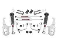 Rough Country 4 inch Suspension Lift Kit 41840 for the 4WD Ford F-150 delivers aggressive style, improved ground clearance, and unbeatable suspension performance. The 100% bolt-on design that requires no permanent modifications. The kit includes front M1 lifted struts, upper control arms and rear lift blocks with M1 monotube shocks.