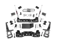 Rough Country 4 inch Suspension Lift Kit 59930 for the 4WD Ford F-150 increases ground clearance and levels the front with the rear of the vehicle. The kit features front lifted knuckles, strut spacers, front and rear cross members and 2 inch rear lift blocks. Also included are two rear Rough Country Premium N3 series shocks to give your truck the best performance for both on and off-road use.