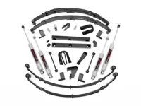 Rough Country 4 inch Suspension Lift Kit 620N2 for the 4WD Jeep YJ Wrangler with Power Steering offers the perfect blend of off-road performance and smooth highway ride. A set of application tuned, lifted leaf springs are included in this kit along with a power steering pitman arm and brake line relocation bracket. The kit also includes track bar drop brackets, bumpstops, and a set of sway bar links. Add the four Rough Country Premium N2.0 Series shocks and you have outstanding control in rugged off road situations and a super smooth highway ride.