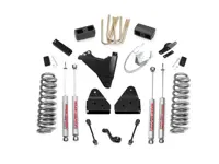 Rough Country 4.5 inch Suspension Lift Kit 478.20 for the 4WD Ford F-250 and F-350 increases ground clearance and allows you to run up to 35 inch tires. The kit features front lifted coil springs, radius arm drop brackets, track bar brackets and 3 inch rear lift blocks. Also included are four Rough Country Premium N2.0 series shocks for the best performance for both on and off-road use.