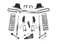 Rough Country 5 inch Suspension Lift Kit 393.23 for the 4WD Dodge Ram 2500 and 3500 with Gas Engine increases ground clearance while maintaining factory steering angles. The kit features front lifted coil springs, control arm drop brackets and front and rear Rough Country Premium N3 series shocks for the best performance both on and off-road.