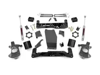 Rough Country 5 inch Suspension Lift Kit 22330 for the 4WD Silverado and Sierra 1500 with stocks cast steel control arms features front lifted knuckels and rear fabricated lift blocks that allows up to 33 inch tires on factory wheels. The kit includes two Premium N3 series rear shocks balanced for on and off-road use and Rough Country's Lifetime Replacement Warranty.
