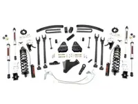 Rough Country 6 inch 4-link Coilover conversion suspension lift kit 58858 for the Gas engine Ford F-250, F-350 Super Duty comes with everything you need for a total transformation of your truck. The kit features front Vertex coilovers, upper and lower control arms, radius arm drop brackets with rear lift blocks, add-a-leafs and V2 Monotube shocks.