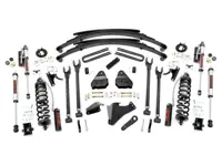 Rough Country 6 inch 4-link Coilover conversion suspension lift kit 58259 comes with everything you need for a total transformation of your truck. The kit features front Vertex Coilovers, upper and lower control arms and durable radius arm drop brackets with rear lifted leaf springs and Vertex adjustable shocks.