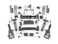 Rough Country 6 inch Suspension Lift Kit 88350 for the 4WD Dodge Ram 1500 preserves factory suspension geometry while providing clearance for 35 inch tires. The kit includes steel knuckles and differential brackets, front lifted Vertex Reservoir struts and rear coils and Vertex Reservoir monotube shocks.