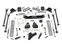 Rough Country 6 inch 4-Link Suspension Lift Kit 50720 for the Diesel engine 4WD Ford F-250 and F-350 Super Duty with 4 inch diameter Rear Axle without Factory Overload Springs increases ground clearance and levels the front with the rear of the vehicle. The kit allows you to replace your factory arms with a 4-Link setup, using Rough Country’s durable, fixed upper arms and adjustable lower control arms. Includes front and rear Rough Country Premium N3 series shocks.