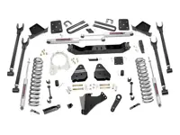 Rough Country 6 inch 4-Link Suspension Lift Kit 56020 for the Diesel engine 4WD F-250 Super Duty with Factory Rear Overload Springs gives your truck increased ground clearance while maintaining the factory-like ride. The kit features front lifted coil springs, fixed upper control arms, adjustable lower control arms and rear fabricated anti-wrap lift blocks. A set of front and rear Premium N3 Series shocks provides a fantastic blend of off-road action and smooth highway ride quality. All this is backed by a lifetime warranty and satisfaction guarantee.
