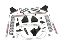 Rough Country 6 inch Suspension Lift Kit 564.20 for the Diesel engine 4WD Ford F-250 Super Duty with Factory Overload Springs increases ground clearance and levels the front with the rear of the vehicle. The kit includes front lifted coil springs, radius arm brackets, stabilizer relocation brackets and rear fabricated lift blocks. Add in a set of rear Rough Country Premium N2.0 series shocks and you have the best performance for both on and off-road use.
