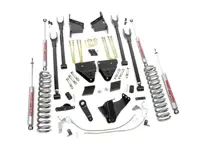 Rough Country 6 inch 4-Link Suspension Lift Kit 565.20 for the Diesel engine 4WD Ford F-250 with Factory Overload Springs increases ground clearance and levels the front with the rear of the vehicle. The kit includes front lifted coil springs, fixed upper control arms, adjustable lower control arms and 8 inch rear fabricated lift blocks. Add in a set of rear Rough Country Premium N2.0 series shocks and you have the best performance for both on and off-road use.