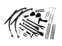 Rough Country 6 inch 4-Link Suspension Lift Kit 583.20 for the 4WD Ford F-250 and F-350 Super Duty with Gas Engine increases ground clearance and levels the front with the rear of the vehicle. The kit includes front coil springs, upper and lower control arms, sway bar link extensions and rear leaf springs. Add in a set of front and rear Rough Country Premium N2.0 series shocks for the best performance for both on and off-road use.