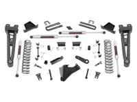 Rough Country 6 inch Suspension Lift Kit 41640 for the Gas engine 4WD Ford F-250 and F-350 Super Duty increases ground clearance and levels the front with the rear of the vehicle. The kit features front lifted coil springs, track bar drop bracket and rear fabricated lift blocks. Add in four Rough Country M1 series shocks and you have the best performance for both on and off-road use.