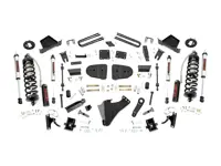 Rough Country 6 inch suspension lift kit 400258 for the Diesel Ford F-250 and F-350 Super Duty is the perfect solution for eliminating factory rake and gaining a bold, aggressive profile. The kit features front Vertex Coilovers, radius arm drop brackets, sway-bar links, track bar drop bracket and rear fabricated lift blocks. This is paired with front and rear V2 Monotube shocks for great on and off-road performance.
