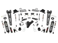 Rough Country 6 inch suspension lift kit 400458 for the Diesel Ford F-250 and F-350 Super Duty is the perfect solution for eliminating factory rake and gaining a bold, aggressive profile. The kit features front Vertex Coilovers, tubular radius arms, sway-bar links, track bar drop bracket and rear fabricated lift blocks. This is paired with front and rear V2 Monotube shocks for great on and off-road performance.