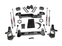 Rough Country 6 inch Suspension Lift Kit 25930 for the 4WD Silverado and Sierra 1500HD and 2500HD Pickup takes your truck to the next level and allows you to run up to 35 inch tires. Designed to increased ground clearance while maintaining factory ride quality, this all-inclusive kit gives the best of both worlds, on or off-road. The kit includes front lifted knuckles, front and rear crossmembers, lifted rear blocks and four Premium N3 series shocks.