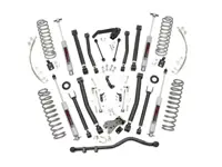 Rough Country 6 inch X-Series Suspension Lift Kit 68322 for the 4-Door 4WD Jeep Wrangler Unlimited increases ground clearance and levels the front with the rear of the vehicle. The kit features front and rear lifted coil springs, upper and lower adjustable front and rear control arms. The kit also includes front and rear Rough Country Premium N3 series shocks.