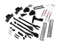 Rough Country 8 inch 4-Link Suspension Lift Kit 591.20 for the 4WD Ford F-250 and F-350 Super Duty with Diesel engine increases ground clearance and levels the front with the rear of the vehicle. The kit includes front lifted coil springs, fixed upper control arms, adjustable lower control arms, track bar and stabilizer relocation brackets and rear 8 inch fabricated anti-wrap lift blocks. Add in front and rear Rough Country Premium N2.0 series shocks and you have the best performance for both on and off-road use.