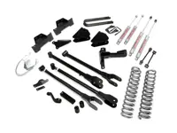 Rough Country 8 inch 4-Link Suspension Lift Kit 592.20 for the 4WD Ford F-250 and F-350 Super Duty with Diesel engine increases ground clearance and levels the front with the rear of the vehicle. The kit includes front lifted coil springs, fixed upper control arms, adjustable lower control arms, track bar drop bracket, stabilizer relocation bracket and rear 8 inch fabricated anti-wrap lift blocks. Add in front and rear Rough Country Premium N2.0 series shocks and you have the best performance for both on and off-road use.