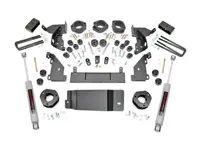 Rough Country 4.75 inch Combo Lift Kit 293.20 for the 4WD Chevy Silverado and GMC Sierra 1500 combines a 1.25-inch body lift with a 3.5-inch suspension lift for the best in balanced performance for on and off-road use. The suspension kit includes front strut spacers, differential drop spacers and 3 inch fabricated lift blocks. The body lift features 1.25-inch body lift pucks. Add in a set of Rough Country Premium N3 series rear shocks and your have unparalleled performance for any driving situation.