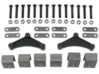Redline Tandem Axle Trailer Hanger Kit APT7 is designed for use with 1-3/4 inch wide double eye springs. The kit includes 2-1/2 inch high front hangers, 2-1/2 inch inch high rear hangers, 3-1/4 inch inch high center hanger, 2-5/8 inch shackle straps, 7-3/4 inch long curved equalizers and mounting hardware. Designed to mount springs to 2,000 to 7,000 pound tandem axle trailer frames.