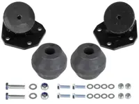 Hollow Timbren rubber springs are mounted between the truck frame and the axle. They do not take the place of the existing leaf spring, but work in conjunction with it, acting as a bump stop, to improve the ride of your truck and to protect springs against overloading.