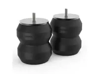 Hollow Timbren rubber springs are mounted between the truck frame and the axle. They do not take the place of the existing leaf spring, but work in conjunction with it, acting as a bump stop, to improve the ride of your truck and to protect springs against overloading.