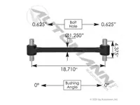 Torque rod TMR5475 for Hendrickson applications. 18.71 inch center-to-center. Primaax EX 232, 462, 692, 262S, 522S, longitudinal, drum brakes rear axle with pinion angles 10.0 through 14.5. Narrow type with TRB6185s bushings both ends. Replaces OEM numbers 67428475 and 67428-475.