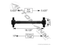 International Navistar torque rod TMR510C. 18.125 inches center to center fixed rod. Non-rebushable, non-rotating bushings with crimped bar style rod ends. Bushing angles are both 15 degrees. Replaces OEM numbers 3581271C2 and 3581271C3.