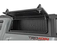 Rough Country truck bed cap Molle side storage bin 734064 maximize your truck's storage potential and is designed as the perfect addition to the Rough Country bed cap. The rugged Molle panel bin enhances organization and accessibility while maintaining a tough, trail-ready design.. The shelf has a durable powder-coated finish and integrated LED lighting.
