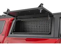 Rough Country truck bed cap Molle side storage bin 734074 maximize your truck's storage potential and is designed as the perfect addition to the Rough Country bed cap. The rugged Molle panel bin enhances organization and accessibility while maintaining a tough, trail-ready design.. The shelf has a durable powder-coated finish and integrated LED lighting.