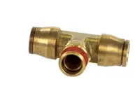 Push-to Connect Tube to Swivel Male Pipe Drop Tee Adapter 972-1-86. 1/2 inch outer diameter tube, 3/8 inch male pipe thread. Features swivel end for easy orientation.