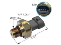 Turbo boost sensor 577.90530 for Cummins L10, N14, M11 ISM, engines. 3-wire oval connector. 2.00 inch length, 9/16"-18 threads.