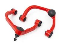 Rough Country 51036RED upper control arms for the 4WD Ford F-150 with 2.5 to 3.5-inches of suspension lift features a solid, 1-piece design made of forged aluminum for superior strength and durability. The forged design outperforms all other types of arm construction, with no welding weak spots that could bend or break.