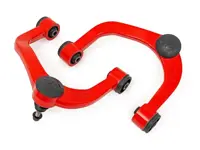 Rough Country 51034RED upper control arms for the 4WD Ford F-150 features a solid, 1-piece design made of forged aluminum for superior strength and durability. The forged design outperforms all other types of arm construction, with no welding weak spots that could bend or break.