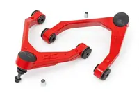 Rough Country 10025RED upper control arms for the 2WD/4WD Chevy Silverado and GMC Sierra 1500 features a solid, 1-piece design made of forged aluminum for superior strength and durability. The forged design outperforms all other types of arm construction, with no welding weak spots that could bend or break.