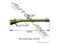 Metal 12 degree angle valve stem V3209 used on trucks and busses. 4.00 inch length, 0.21 inch rim hole diameter. Euro style, wide base rims.