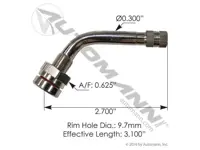 Metal 60 degree angle valve stem TR544DH used on trucks and busses. 2.70 inch length, 3.10 effective length, 9.7mm rim hole diameter.