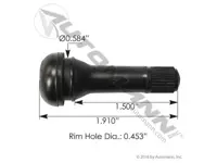 Rubber straight valve stem TR414 used in trucks and busses with 0.45 inch rim hole diameter. 1.50 inch stem length, 1.91 inch overall length.