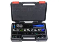 Weather pack connector kit 178.EK220WP. 220 piece kit. The kit includes male and female terminals, wire seals, 1, 2, 3, and 4 pole shroud and tower housings. Includes terminal release tool and ratcheting crimper with jaws.