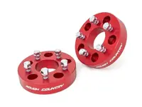 Rough Country 1.5 inch Wheel Spacer Adapter 1100RED for the 4WD Jeep Wrangler and 2WD/4WD Wrangler Unlimited converts 5-by-5 inch to 5-by-4.5 inch bolt pattern. Made from 6061-T6 aluminum the spacers are corrosion resistant and have the suds preinstalled. This simple adapter allows you to retrofit your JK's existing 5-by-5-inch bolt pattern to a 5-by-4.5-inch bolt pattern, affording you the ability to run TJ, XJ, and YJ wheels. Rough Country spacers allows use of a wider tire on stock wheels and giving your Jeep an aggressive look. Includes two spacers.