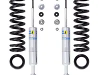 Bilstein B8 6112 leveling kits are designed to provide more ground clearance, allow for larger tires, and increase wheel travel. Multiple snap-ring grooves in the body allow for different spring seat positions, providing 0-2.75 inches of front lift (depending on application). These kits consist of (2) 60mm shock absorbers combined with (2) custom matched cold wound coil springs and (2) billet aluminum spring seats. The large 60mm digressive piston allows for increased damping control.