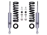 Bilstein B8 6112 leveling kits are designed to provide more ground clearance, allow for larger tires, and increase wheel travel. Multiple snap-ring grooves in the body allow for different spring seat positions, providing 0-2.75 inches of front lift (depending on application). These kits consist of (2) 60mm shock absorbers combined with (2) custom matched cold wound coil springs and (2) billet aluminum spring seats. The large 60mm digressive piston allows for increased damping control.